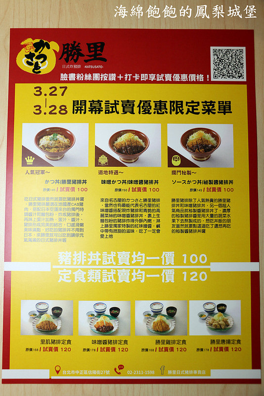 勝里日式豬排專賣店-日本名古屋NO.1平價百元豬排台灣一號店-台北車站平價豬排菜單搶先看(台北車站)
