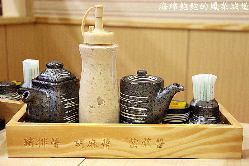 豬排醬、胡麻醬、紫蘇醬與七味粉等