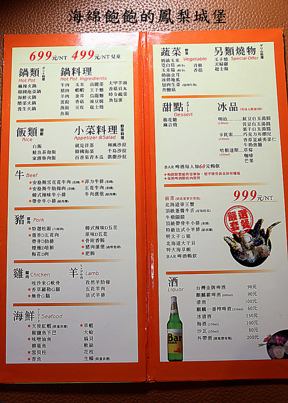 另有999元嚴選套餐(帝王蟹、牛舌等食材)