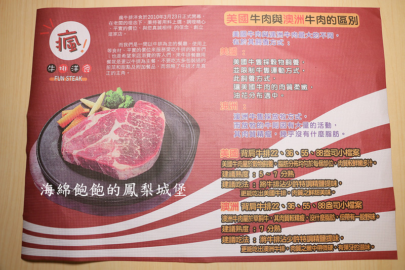 瘋牛排使用美國與澳洲牛肉,菜單上皆會標註