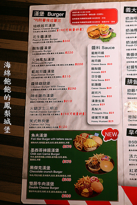 BSB美式餐廳參考菜單,請以現場提供為主