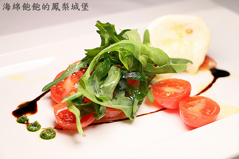 乳酪+芝麻葉+蕃茄+紅酒醋,超讚!