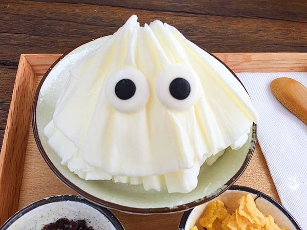 這是友人點的牛奶口味, 吃起來便是常見的鮮乳雪花冰的滋味,這在路地氷の怪物存中店也吃得到
