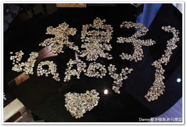 進到店內先看到桌子上面用咖啡豆排成木桌子的字樣,一開始我還想說是店家豆子用完沒收