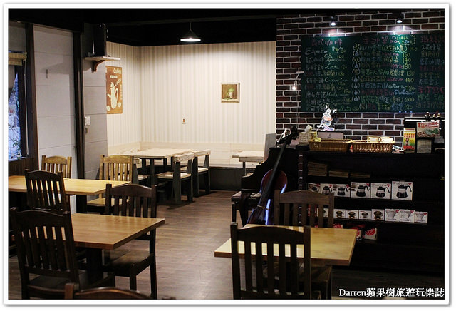 在後面白色牆面的座位區帶點雜貨風格,店內比較明顯的擺飾就是鋼琴和大提琴簡單為主