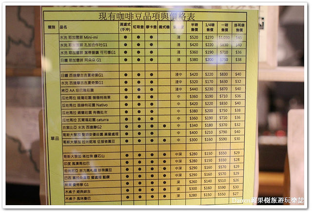 現有烘焙精品莊園咖啡豆品項與價格表拍來給大家參考,每次看咖啡豆感覺又是門很深的學問