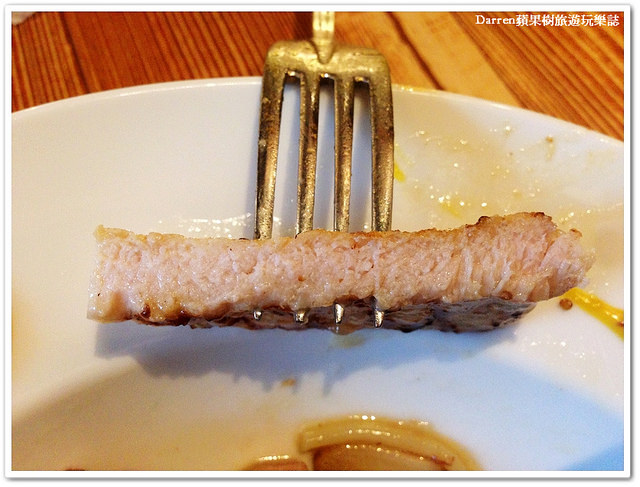 炙燒過的豬排口感扎實,肉質吃起來軟嫩多汁很好吃,旁邊還有蜂蜜芥末可以沾