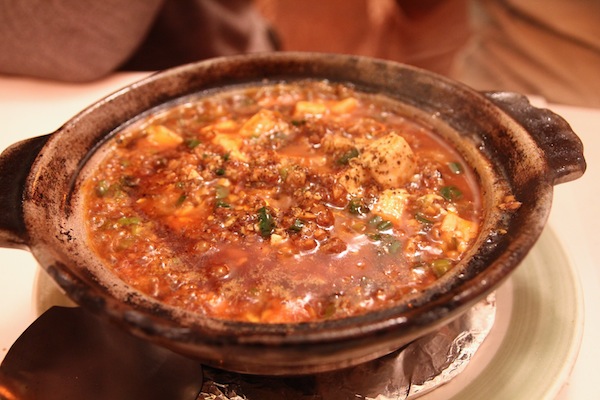 相當令人訝異的是麻婆豆腐用燒熱的鐵鍋端上,很少吃到這樣的麻婆豆腐,上桌後還是滾得厲害,謹遵著麻婆豆腐的燙字。這道麻婆豆腐的花椒香味十分迷人,聞著 令人沉迷在花椒的香麻味中,可惜的是吃起來並不太麻,稍微有點辣,口味夠重,適合下飯。此外,裡頭的絞肉份量非常多,吃起來酥軟搭配豆腐的嫩滑,挺難得吃 到這樣的麻婆豆腐。