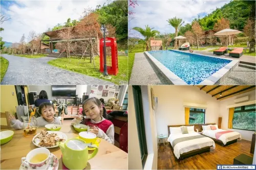 在鬱鬱蔥蔥的樹林中聳立著美式庭園鄉村風的候鳥風行民宿