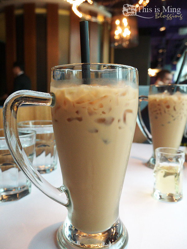 先上桌的是泰式冰奶茶(NT.120),這跟我們在很多泰式餐廳喝到的橘紅色泰式奶茶不同,有人說那是用泰國紅茶葉沖泡出來才有那顏色,有人說是色素,有人說是椰糖氧化後的顏色,也有人說是煉乳(泰國人喝奶茶都愛加一堆煉乳)。總之今天看到的就是一杯很普通的冰‧奶‧茶。