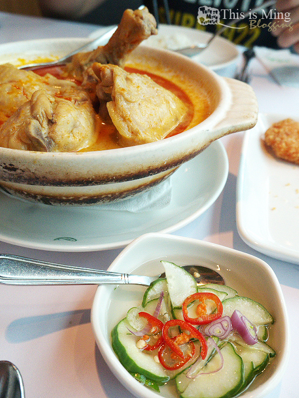 咖哩雞(NT.320)是用紅咖哩下去做的,有點小辣,我較喜歡綠咖哩的風味,紅咖哩偏辣,用陶鍋燉的雞肉吸飽了紅咖哩的味道,除了那嗆辣乾辣椒的香氣外,雞肉本身也超軟嫩的。