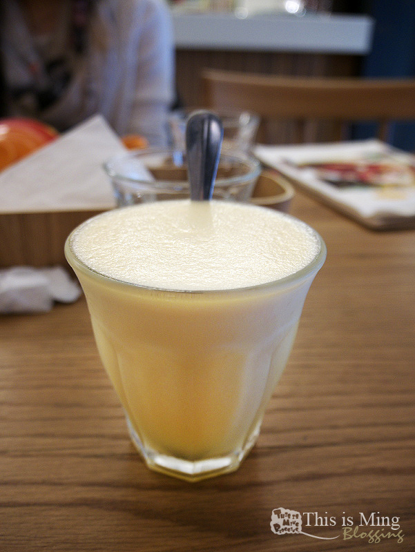 我選了鮮榨果汁,早晨喝果汁最棒了。新鮮的果汁一早補充維生素C,元氣滿滿,只可惜稍小杯了點。