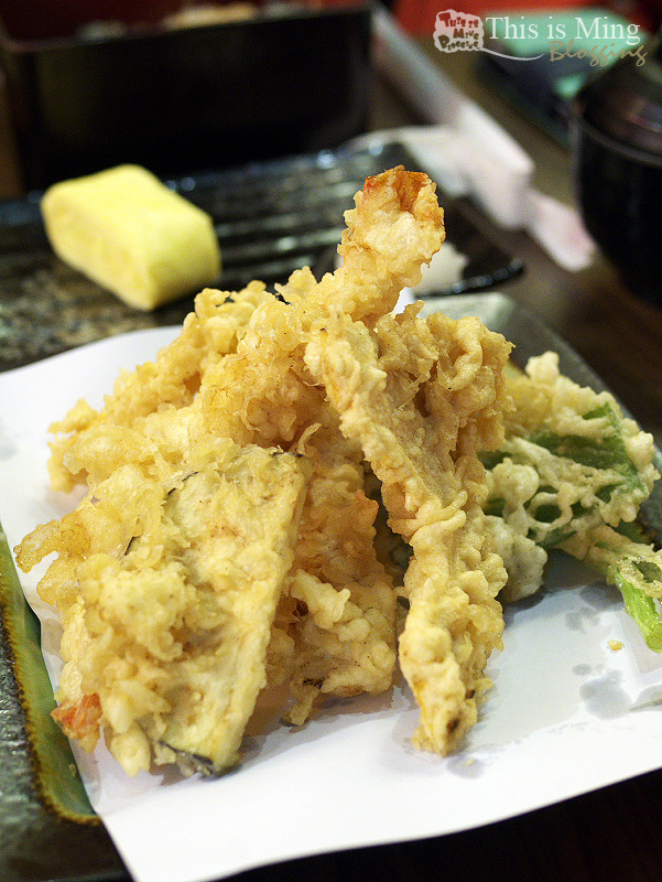 這是炸蝦盤(炸蝦天婦羅,NT.220),裏頭有兩隻炸蝦與炸蔬菜天婦羅等,儘管是很簡單的日本菜式,至少炸起來水準還不錯,粉漿與食材的熟度和覆蓋都不差,沒炸壞或炸過頭了。