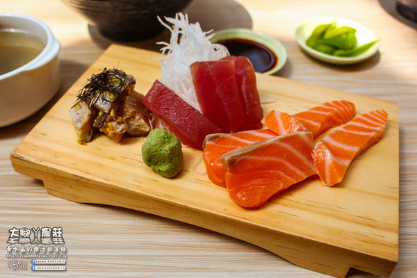 今天的生魚片有亮點,講究的以精緻的木托為盛器,
