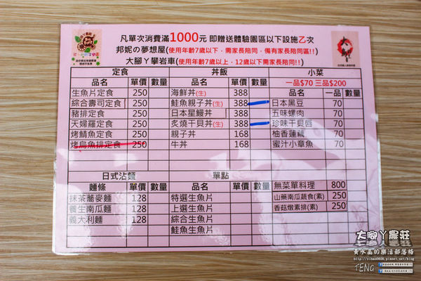 ◎大腳ㄚ農莊親子樂園/大島割烹日本料理/菜單