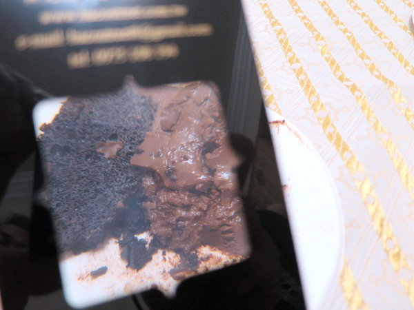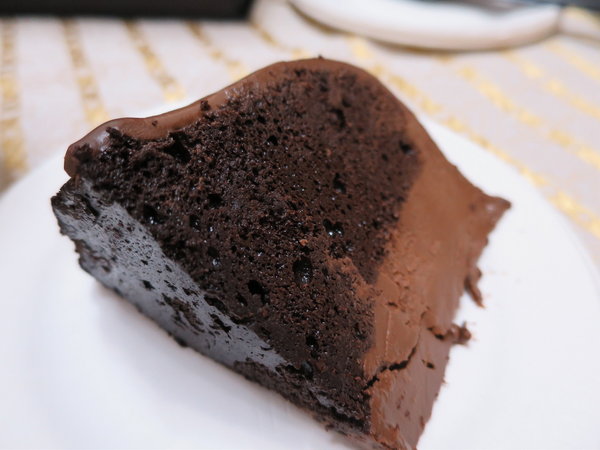 巧克力蛋糕溫潤可口。似若布朗尼卻無其偏硬如餅乾的口感,反而入口後化開。
