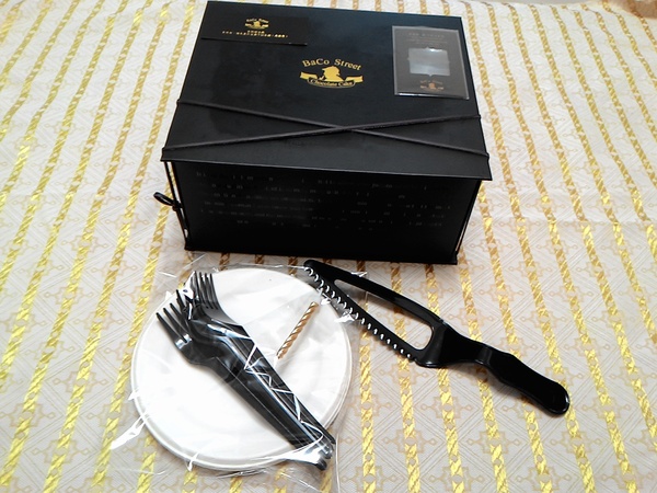金色直筒螺旋型慶生蠟燭很有質感,搭配燙金字體的店名更有型。