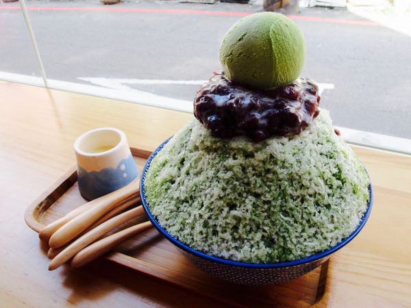並搭配手工蜜紅豆以及牛奶組成的刨冰.