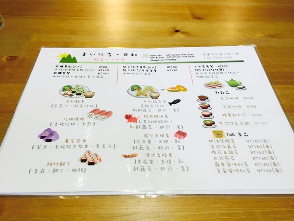 ✿桃園✿日和菜單培根捲捲辣炒雞丁飯糰培根捲捲最外層的飯是鍋巴口感!超級酥脆的口感大加分辣炒雞丁飯糰辣的很開胃!飯很香Q蜂蜜鮮奶茶微甜的蜂蜜與奶茶搭配很順口的新組合我們都是單點因為有計畫等等要吃"暖食涼品"剉冰其實單點份量就很足夠了呦!若是點套餐會有沙拉與飲料而且是用木盤盛裝!✿店家資訊✿地址:桃園市桃園區民富三街1號營業時間:週三~週一1000-1700日式飯糰,日和,桃園
