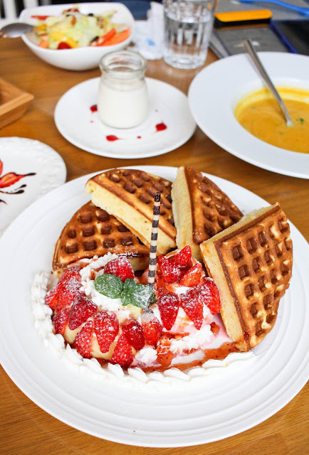 strawberry,Custard and ice cream waffle