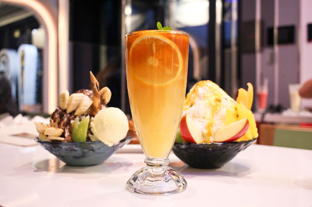 新鮮水果搭配茶飲創造出獨特口感,柳橙香甜明顯而綠茶味若影若現。