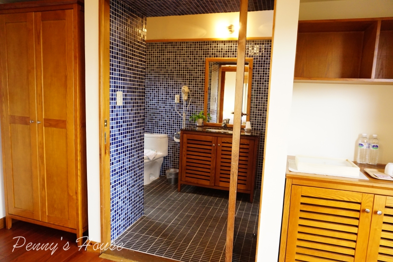 廁所的部分應該有整修過,牆面的馬賽克藍色磁磚很美,我覺得好搭配!