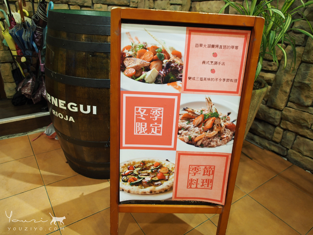 冬季限定的草莓料理,選用苗栗大湖農場直送的草莓,看了看門口這招牌便決定要點道草莓料理嚐嚐。