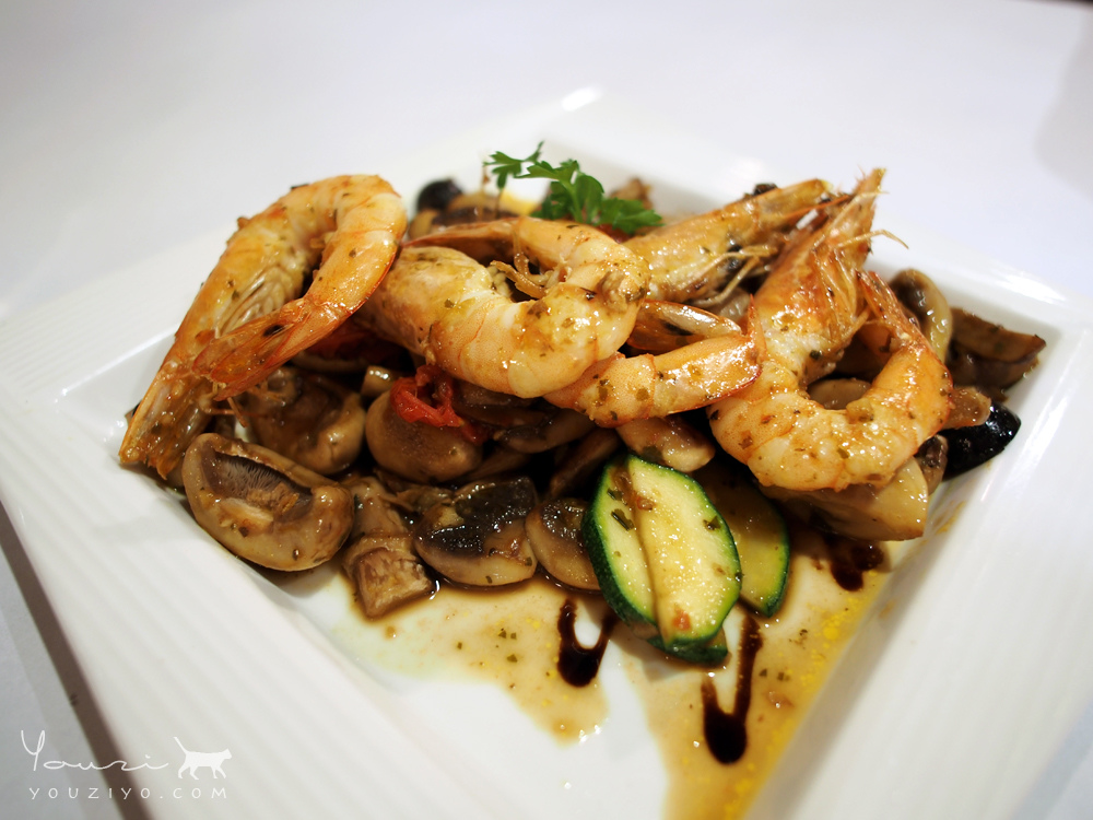 蝸牛義大利餐廳招牌開胃菜之一,剝殼海蝦、蘑菇、櫛瓜…等食材份量十足,建議人多可以點了一起分享,看似有些重口味,單吃卻也不覺得過鹹。