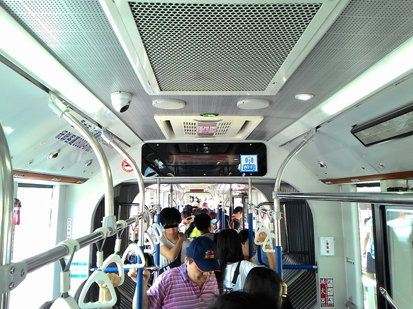 除了雙節車廂的不同,內部跟高雄的公車大同小異。就如有些公車有WI-FI,台中BRT也有WI-FI。