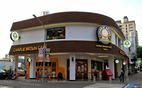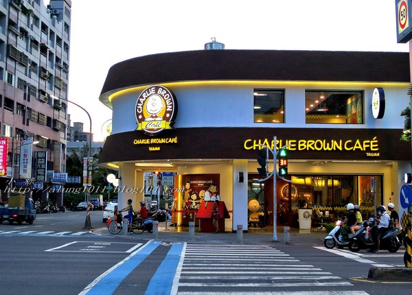 查理布朗咖啡館位在博愛三路與至真路口,漢神巨蛋百貨就在附近。
