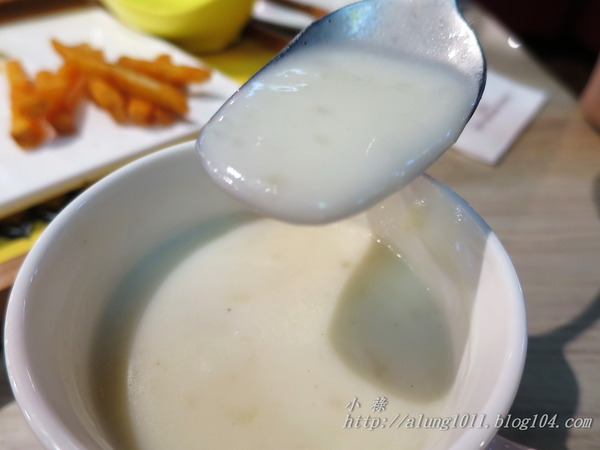 蘑菇濃湯:濃湯裡有加煎培根增加香氣與口感。
