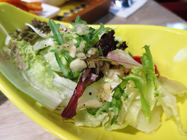 美味生菜沙拉很消暑!蘿蔓、紅萵苣、火箭菜等生菜淋上清爽的洋蔥醋醬汁,這道好吃又開胃喔