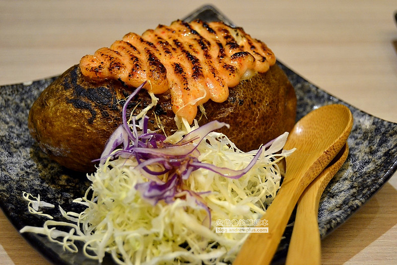 ▼但是秘密就藏在明太子下面唷!這個馬鈴薯的做法應該是把馬鈴薯的肉挖出來,肉去做調味和打成泥,然後再灌回馬鈴薯裡面!所以吃起來口感非常的柔軟,馬鈴薯的纖維幾乎都吃不出來,而單吃馬鈴薯泥會有淡淡的柚子香氣,搭配上鹹鹹的明太子醬風味更好! 安魯魯差點連皮也都吃掉了!