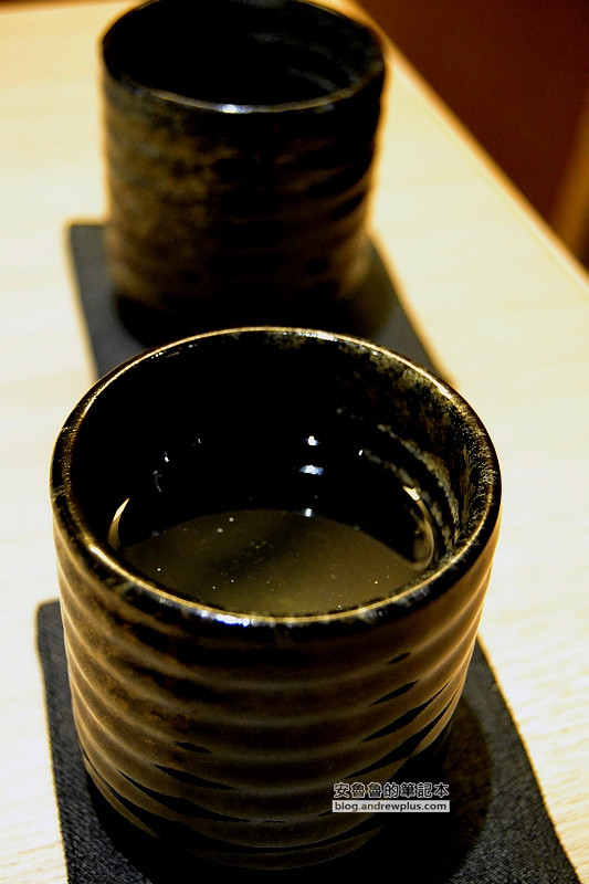 一般日式料理或麵店,多半附上的是烏龍茶或麥茶,但是這裡附的是檸檬薑茶! 這茶還真好喝,麵還沒上桌前,安魯魯就先乾了兩杯~喝起來是薑的嗆辣味之中帶著檸檬的酸和香氣! 甜甜的口感~真是一杯暖身暖胃又喚醒味蕾的好飲品!