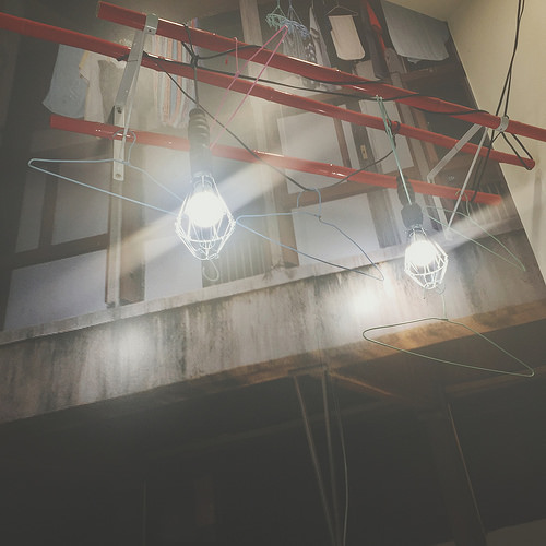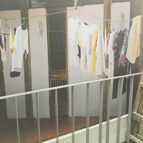 再靠近仔細看原來前方的柵欄和上方的曬衣竿、衣架都是真的。