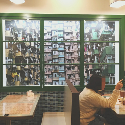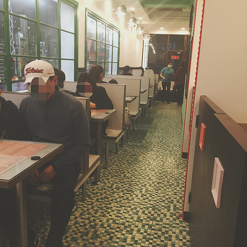 看得出來店家很用心在做裝潢,營造出老香港風味的氣氛,地板和牆壁上的磁磚、三面大大的窗看出去都是香港的景色,彷彿我們就是坐在香港的店裡用餐。