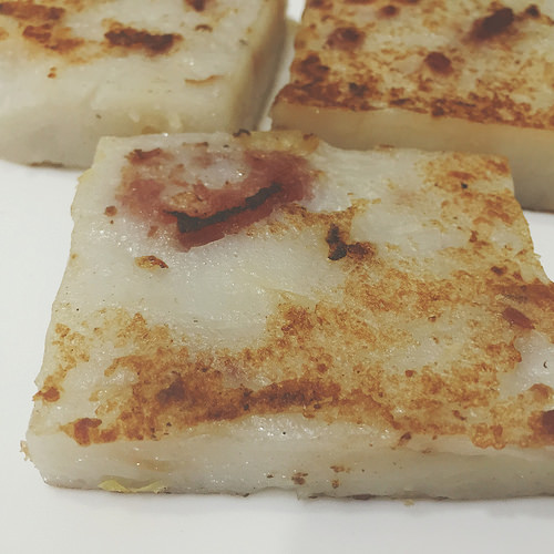 港式蘿蔔糕裡頭怎能沒有蝦米呢!而且顧名思義裡頭當然有臘肉,只是這...這...這肉也太大塊了吧哈哈哈有夠真材實料!通常不是都碎肉嗎