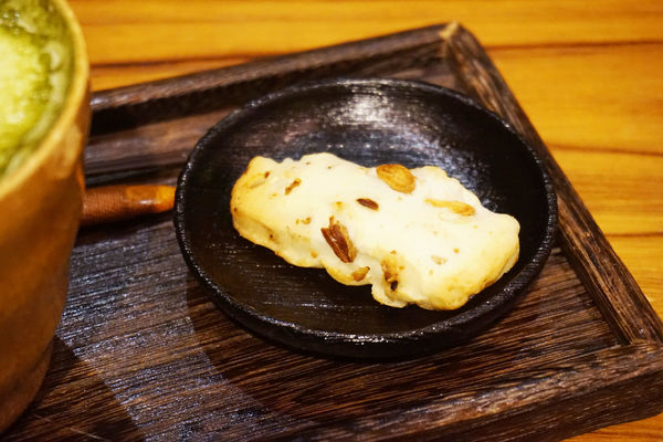 一旁還有附贈了一小塊很像仙貝的菓子
