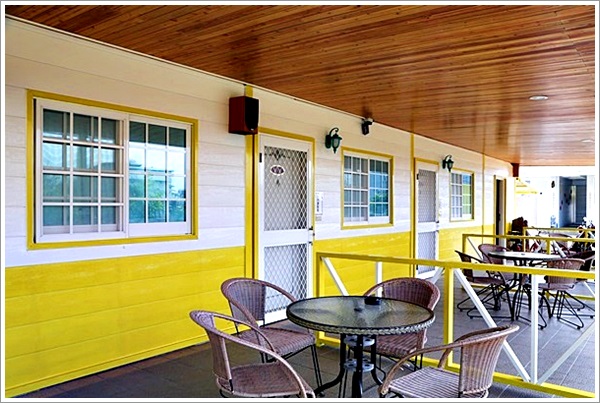 | 在走到房間前會先看到一座黃色屋子… 這裡主要是提供早餐的地方… 整體的環境相當乾淨,黃色的色調也讓人感到很舒服… |
