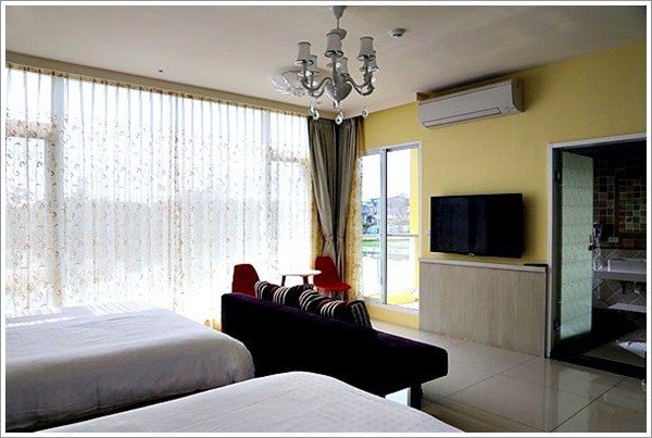 | 房間兩側都有落地窗的設計讓整體採光非常好… 但晚上睡覺前一定要記得把窗簾拉上… 不然隔天一早可是很早就會被陽光曬醒了喲XD… |