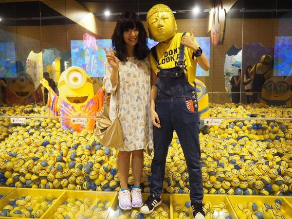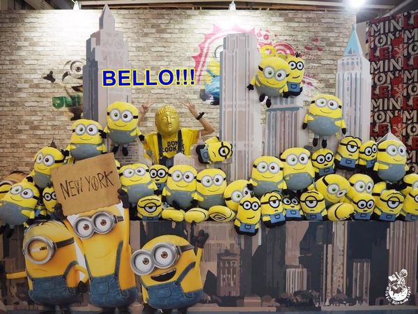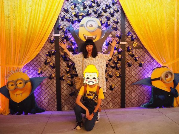 我手上抱的小小兵玩偶是展區提供的,不遠處有一整排的小小兵玩偶可以讓你抱著拍照