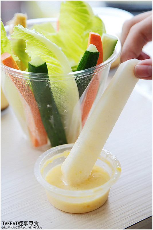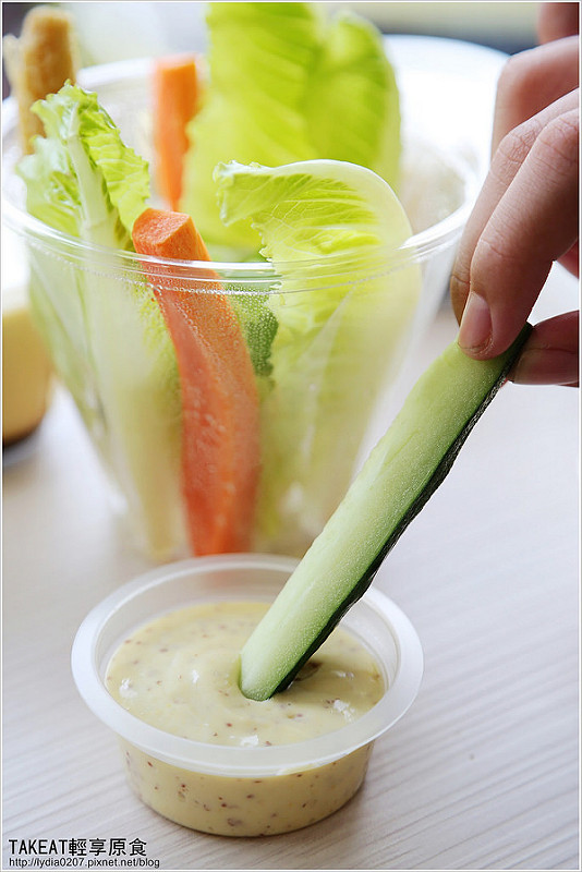 新鮮的蔬菜棒搭配芒果優格醬,非常清爽!尤其裡面的生菜棒都很清脆,這點就讓人很開心了!