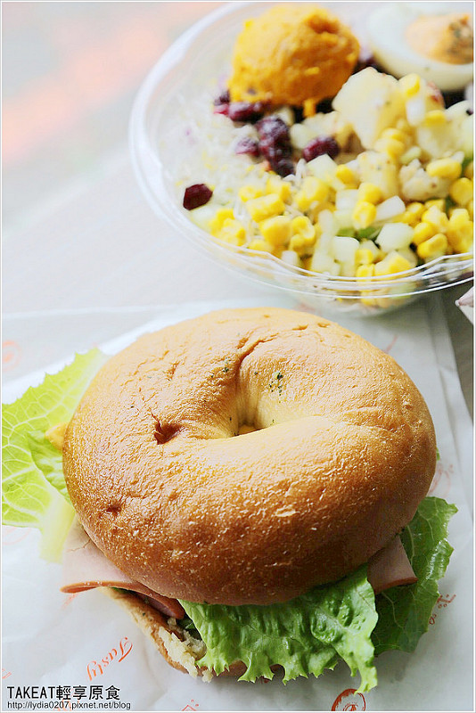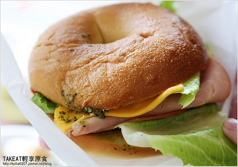 Bagel那種嚼勁,還有咀嚼後淡淡甜味的麵粉香,搭配青脆生菜與低油脂的火腿和起司,讓人滿足。
