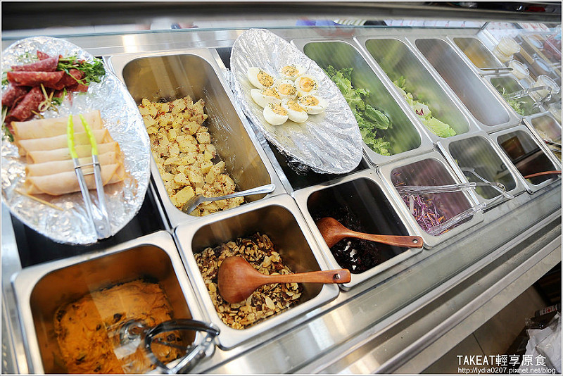 店裡除了賣幾樣的輕食麵包和常備小菜外,最棒的是這裡的生菜沙拉,可以依照個人喜歡選擇。