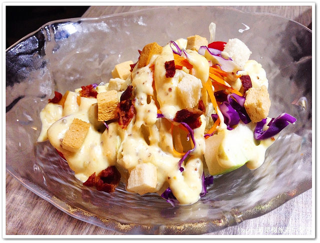沙拉有芒果、和風、凱薩口味,我選擇凱薩沙拉,裡頭有生菜和水果口味微甜還不錯