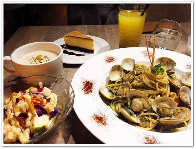 餐點我點了青醬松子蛤蜊義大利麵套餐 NT:330