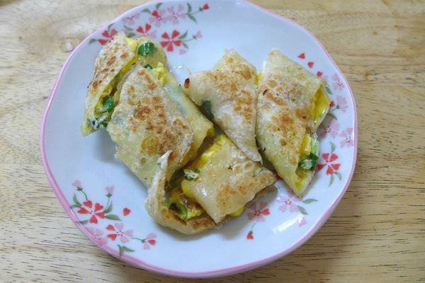 用有著阿媽大花布的花盤盛裝,怎麼看起來比普通的蛋餅好吃這麼多!!!!