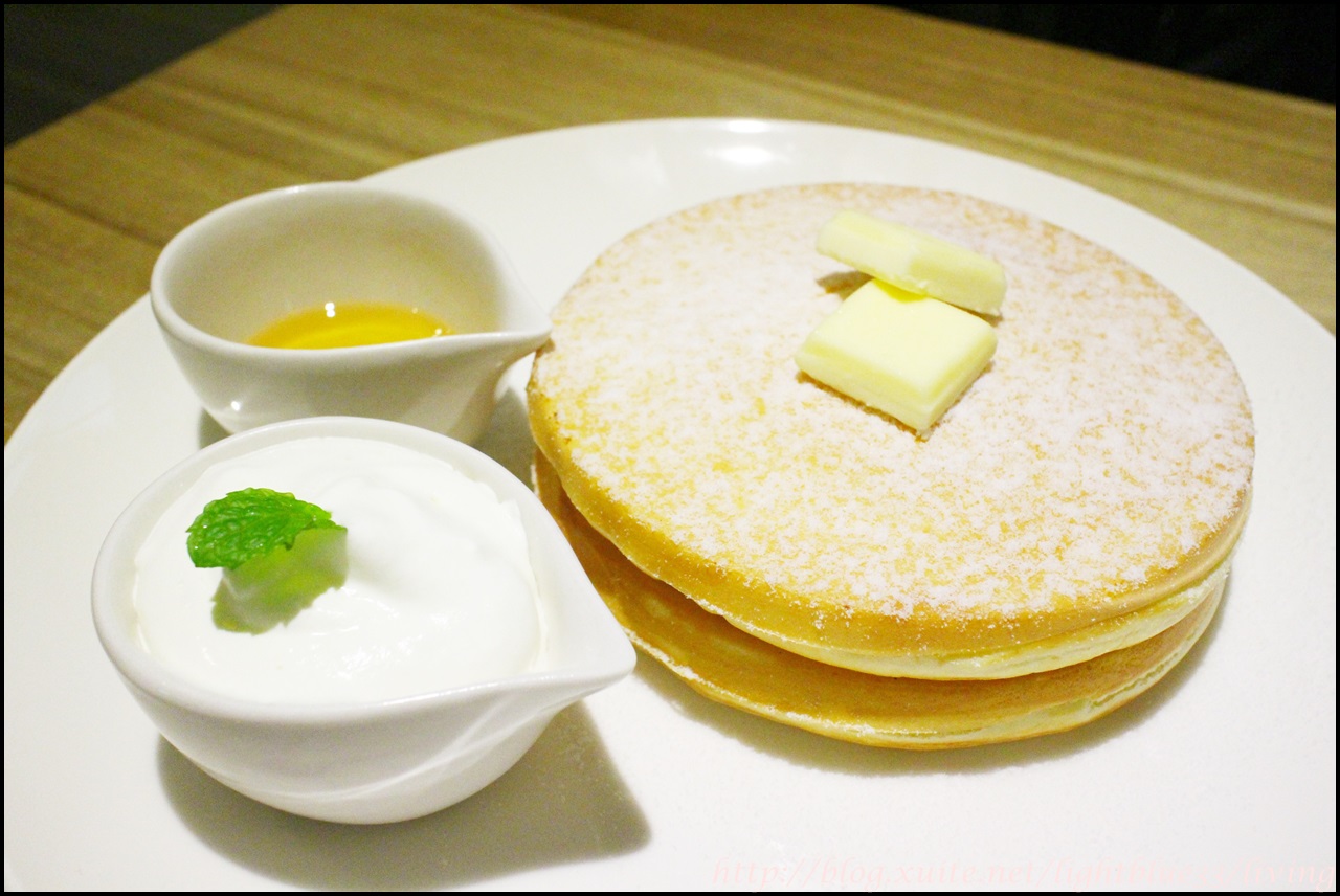 因為決定要點莓果聖代,所以鬆餅就點了原味,鬆餅有兩大塊,還有附奶油、鮮奶油跟蜂蜜