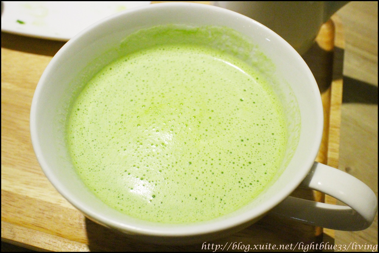 兩塊抹茶磚與一杯熱牛奶的比例是剛剛好的,全部攪拌好之後就會有這樣一杯漂亮碧綠的抹茶了,抹茶搭配香濃而具自然甜味的鮮奶,彼此烘托出鮮明而濃郁的茶香與奶香,讓人很想續杯