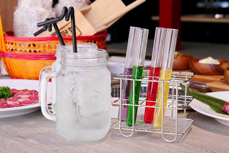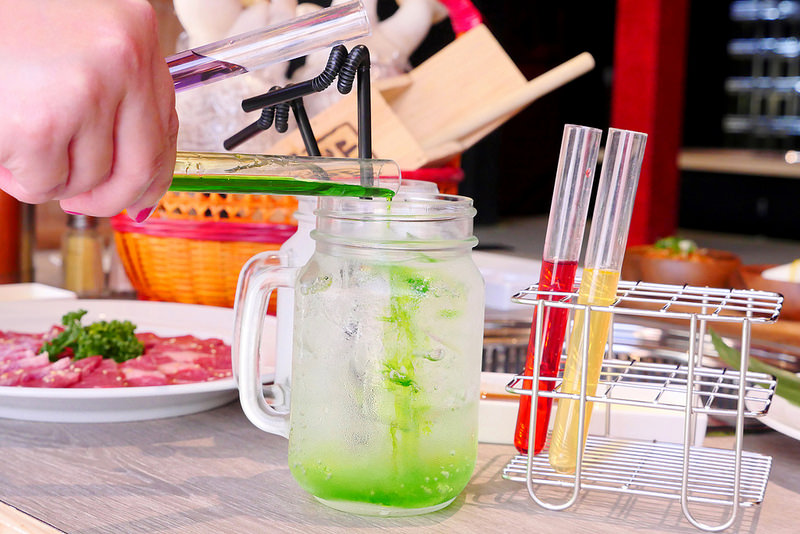 端上有點夜店風的汽泡飲料,讓人有點小小驚豔,五顏六色的糖漿各自有它們的炫麗,